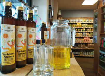 Derzeit gibt es bei uns den Kurkuma-Zitronen Bio Sirup UND